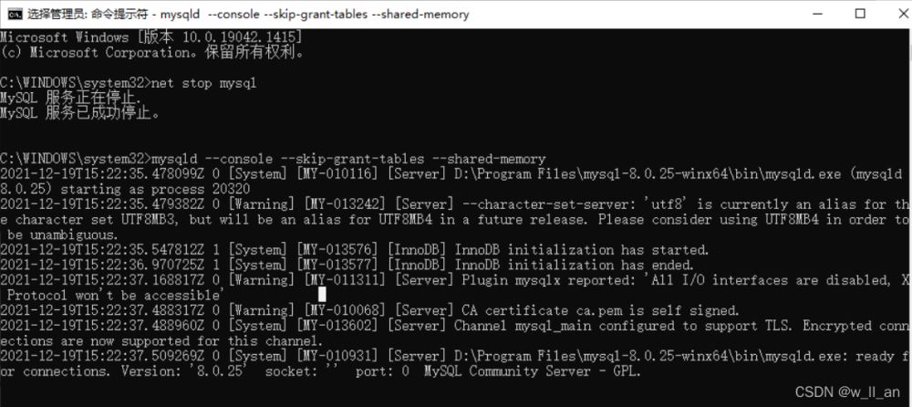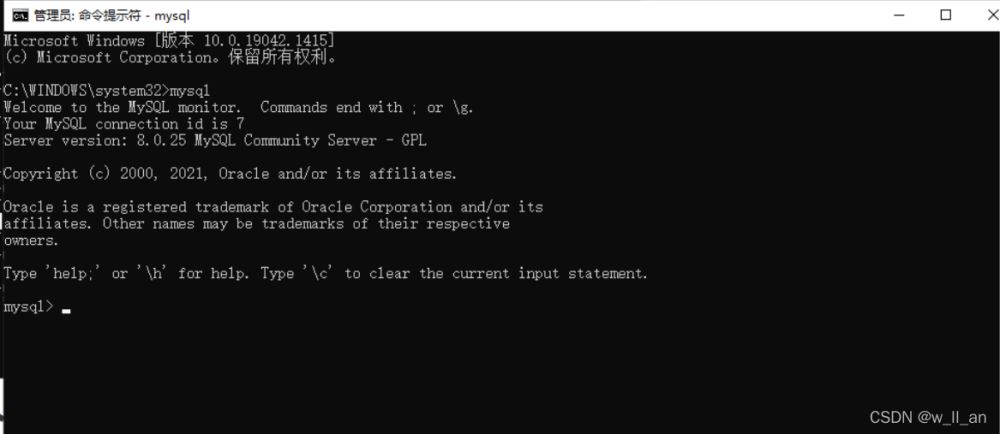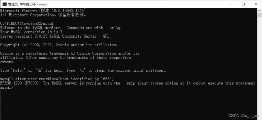 3.以管理员打开另一个cmd窗口,直接输入mysql(刚才的不要关闭)