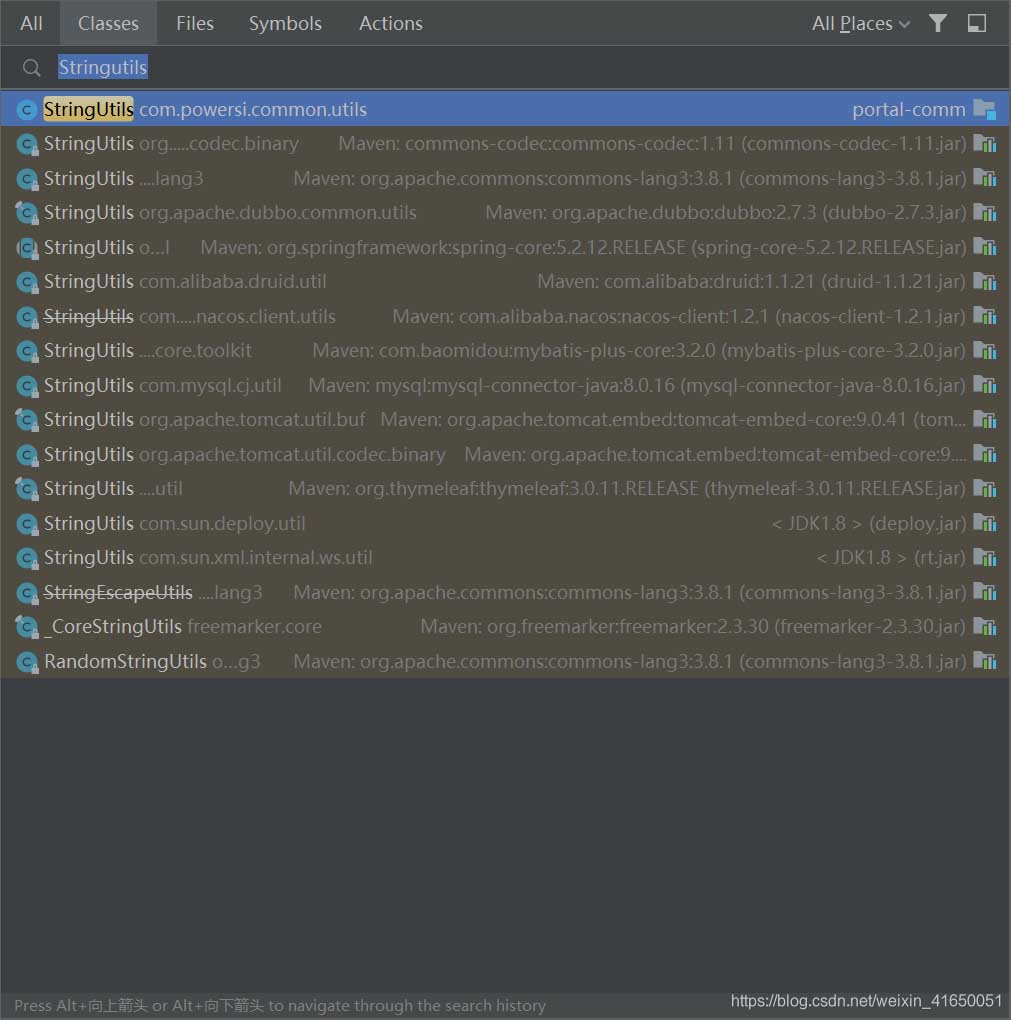 idea全局搜索了意外看到了All Places,发现maven引的一个jar包也存在同包同名的另一个class,坑人啊。