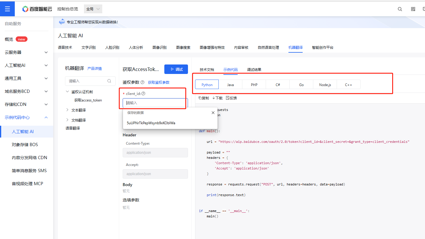 1,百度智能云领取免费的api接口