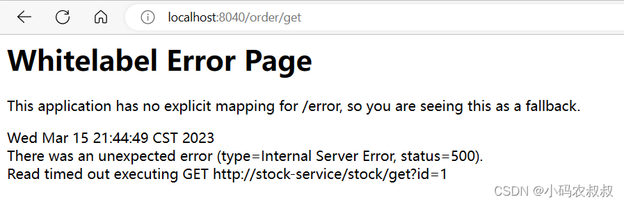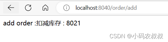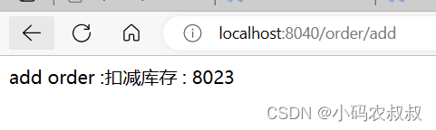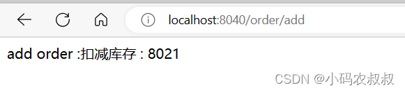 分别启动stock模块的工程和order模块的工程,然后浏览器调用:localhost:8040/order/get