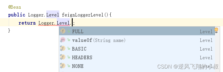 添加如下配置类,指定level的级别为FULL,表示输出完整的日志信息