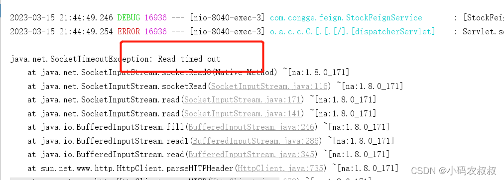 同时观察控制台输出日志,可以看到输出了 超时的信息;