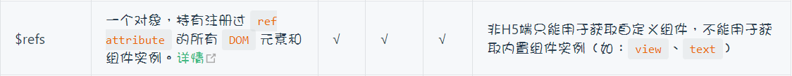 最近写uniapp,遇到一个需要获取到页面中dom元素,我第一反应是使用this.$ refs进行获取,于是我开心的使用this.$refs写了很多代码,使用h5调试的过程中没有发现任何问题,但后来真机调试的时候发现在app端无效,于是我查看文档发现了: