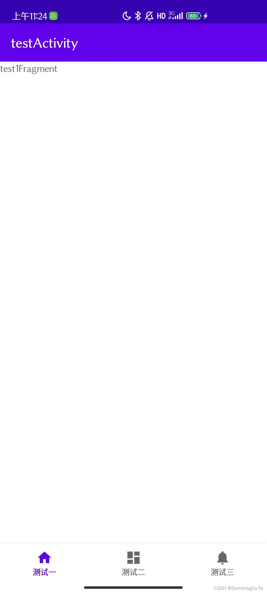 需求:如上图所示。点击测试一菜单,展示test1fragment。点击测试二菜单,展示test2fragment。点击测试三菜单,展示test3fragment。