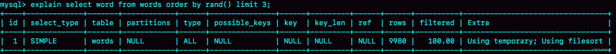 因此,order by randn()使用了内存临时表,内存临时表的排序方法用的是rowid排序方法。