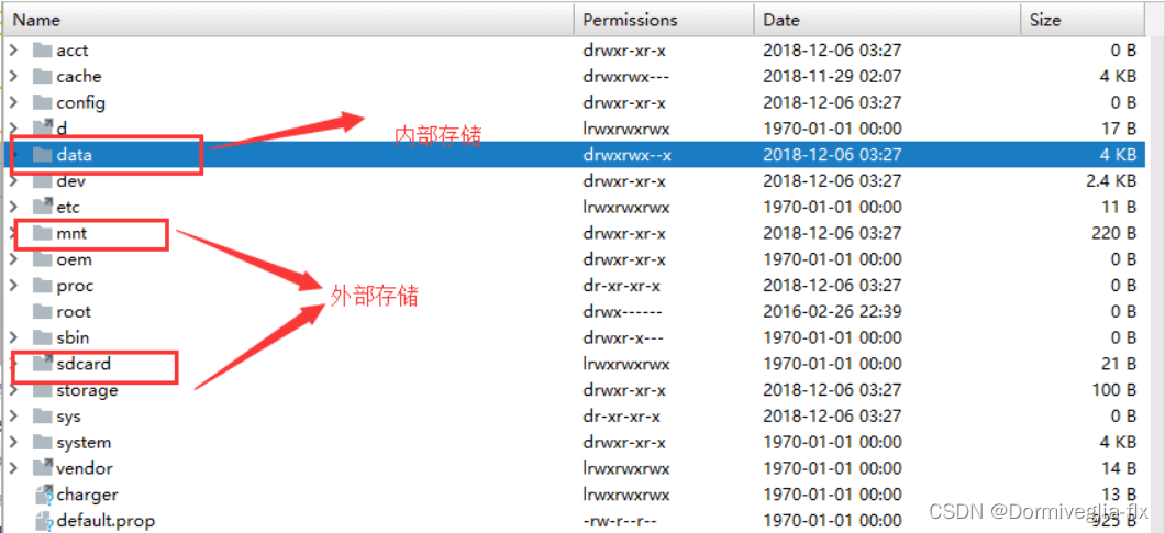 :内部都是app的包名,存储着应用程序相关的数据,例如 data/data/包名/(shared_prefs、database、files、cache