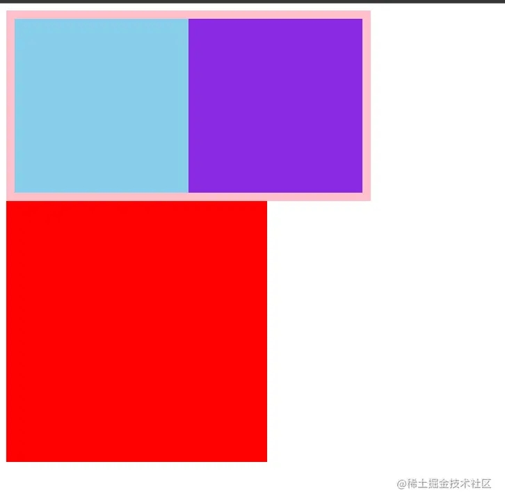 由于box1没有设置高度,box1里面的元素设置浮动后,无法将其撑起,从而影响到了外面的box2。那么如果box1是一个BFC的话,那么效果就会如下图一样: