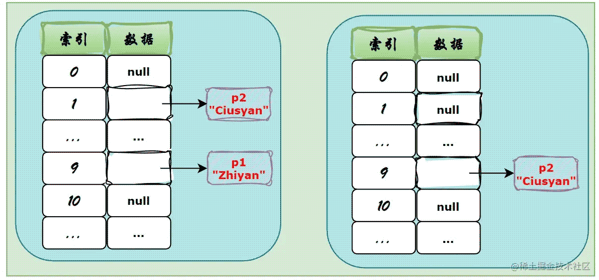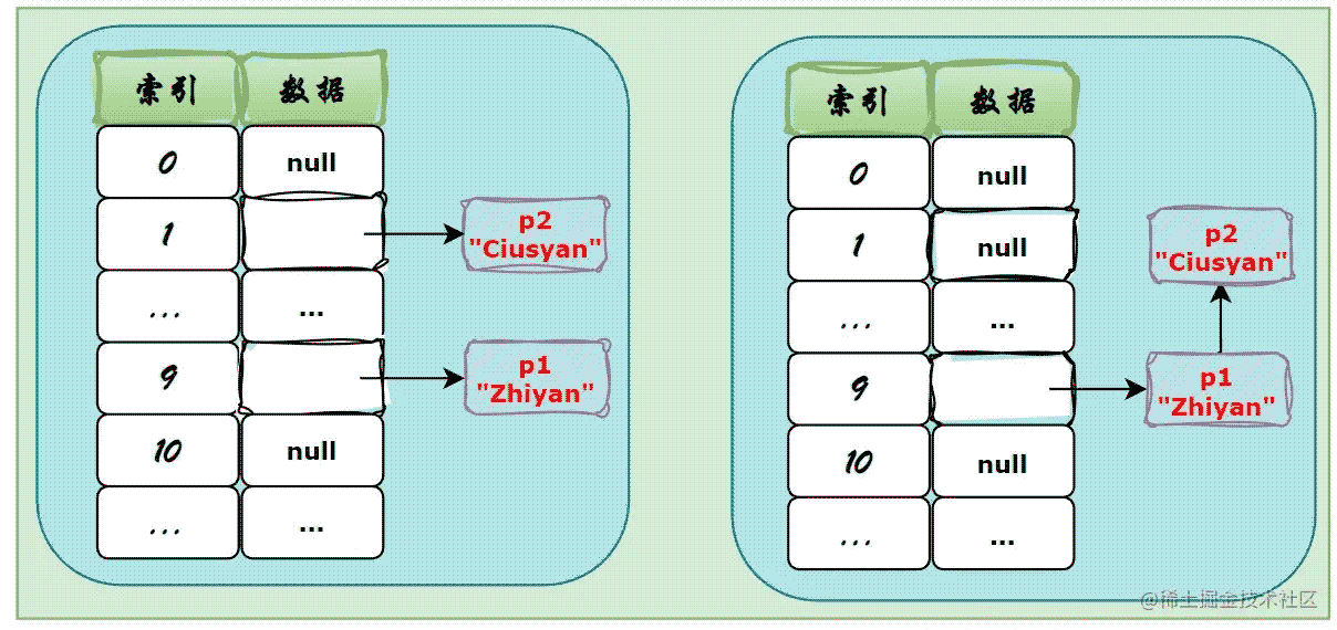 是同一个对象 - 所以放入哈希表中的大致结构如上图所示: