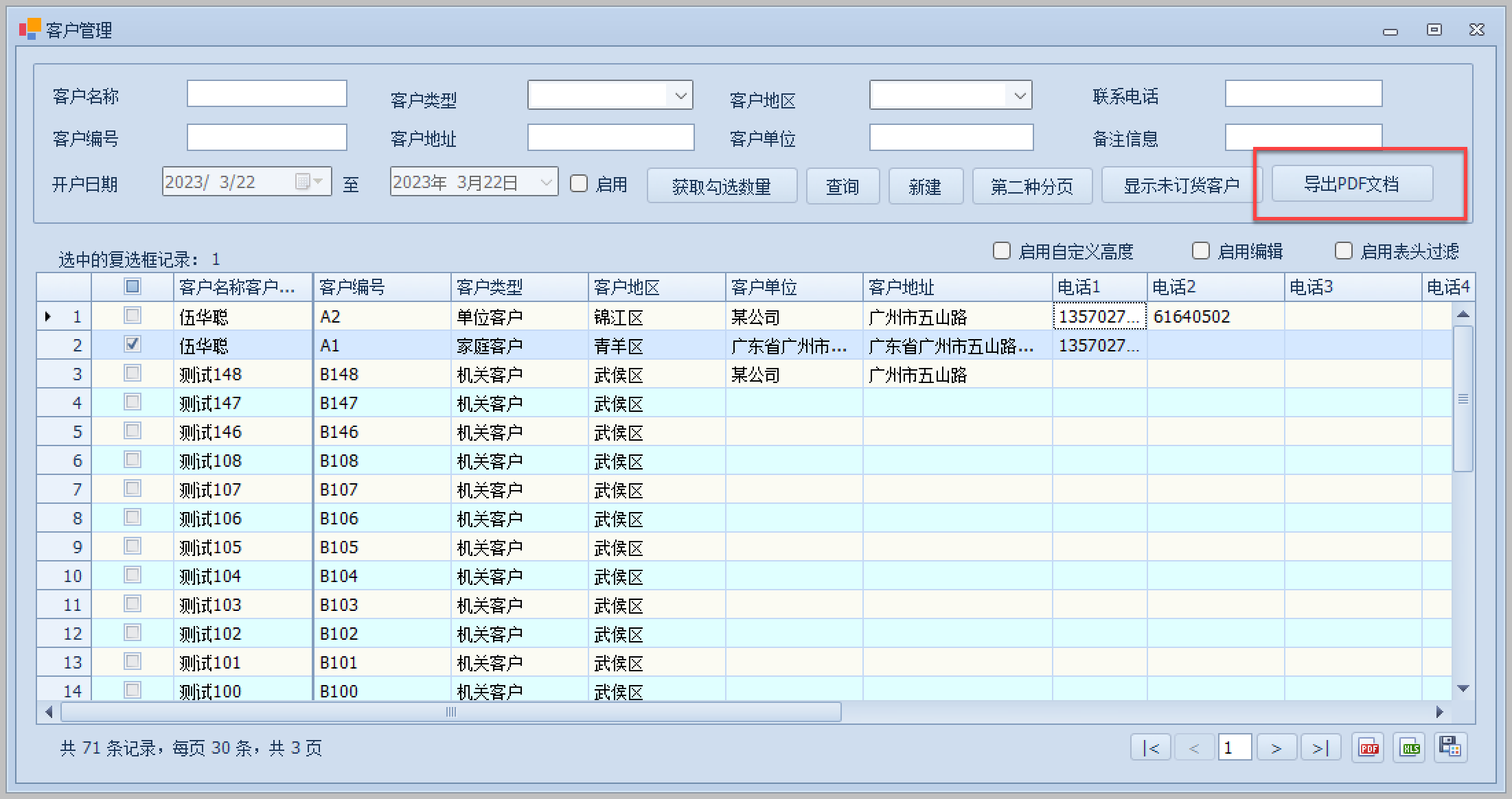 一般使用列表的输出为横向较为美观,字体比正常窗体显示的字体小一点,并可以设置是否每页PDF包含表头信息等等。