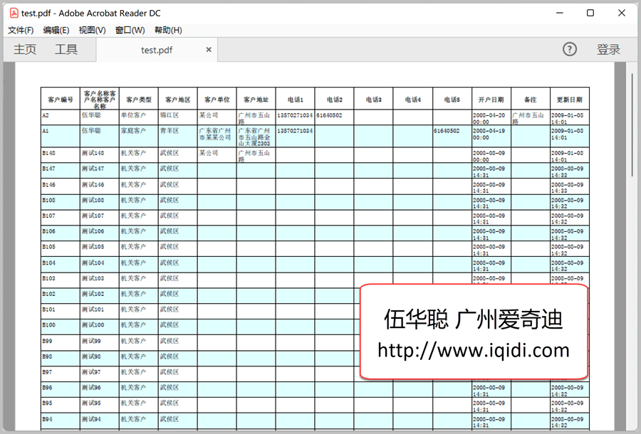 }上面根据方法的参数对字体,页面宽度高度、表格间隔颜色,表头等信息进行设置处理,然后使用插件进行输出PDF的内容即可,PDF内容的输出,有点类似DataTable的表格控制,单元格的信息可以独立控制。