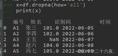 首先输出的是dropna(how='all')的结果: