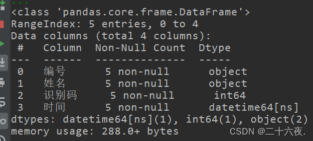 x=df['姓名'].dtype#针对查看某一列的数据类型print(x)