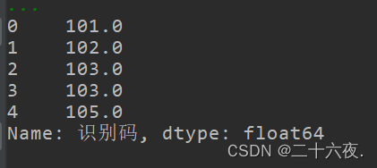 y=df['识别码'].astype('float64')print(y)