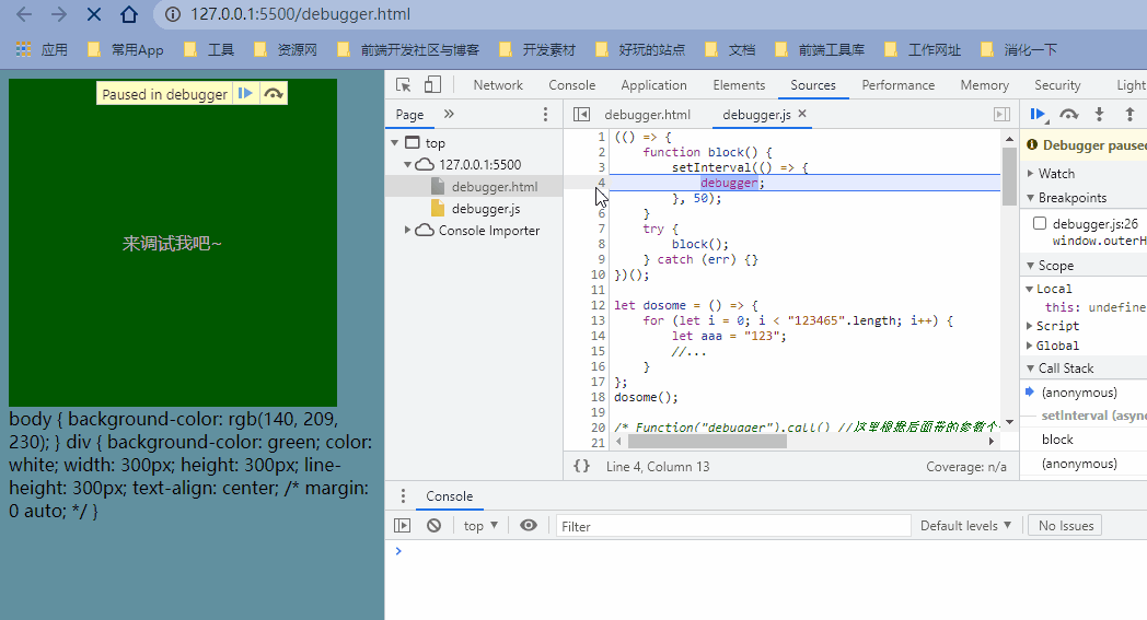 将 setInterval(() =>{ debugger;},50); 写在一行中,你即使通过添加 logpoint 为 false 也没用,仍然是疯狂 debugger,即使你可能想到通过左下角的代码格式化来格式一下setInterval(() => {debugger;}, 50); 将它变成多行的也是没用,仍然会在刷新后重新弹 debugger。