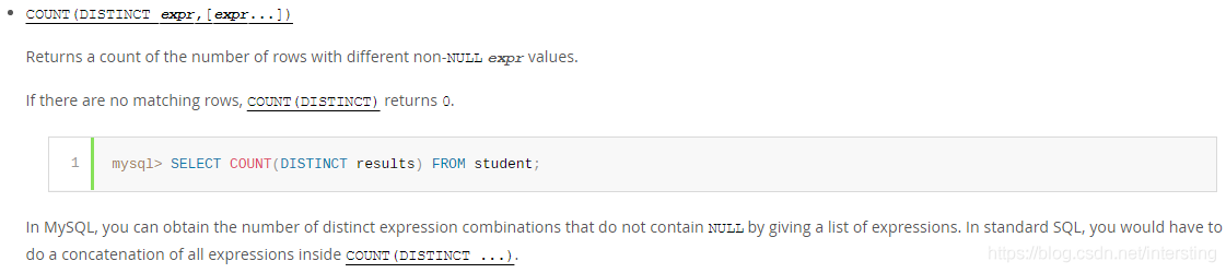从表中可以看到,mysql执行引擎直接将count(distinct expr)作为一个查询,查看官方文档: