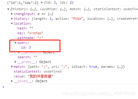 这里跳转后url显示是这样的,然后传递过来的参数通过this.props.location.query来获取,下面打印的是跳转页面的this.props