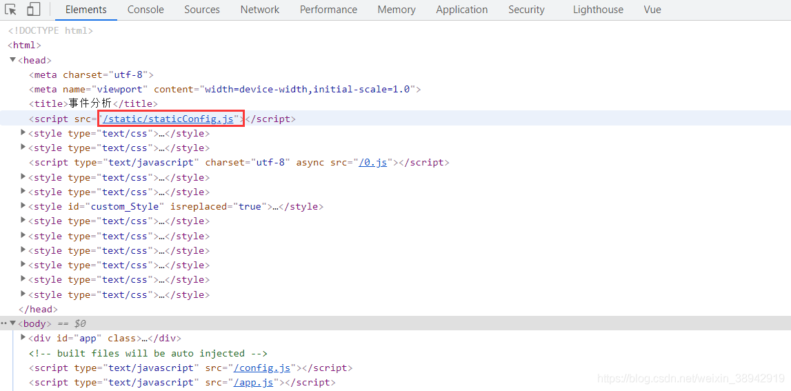 ps:在服务器上要注意src中文件路径,可以通过控制台查看文件路径,在本地编译时是/static/staticConfig.js,在服务器上或许需要/服务器文件夹名称/static/staticConfig.js