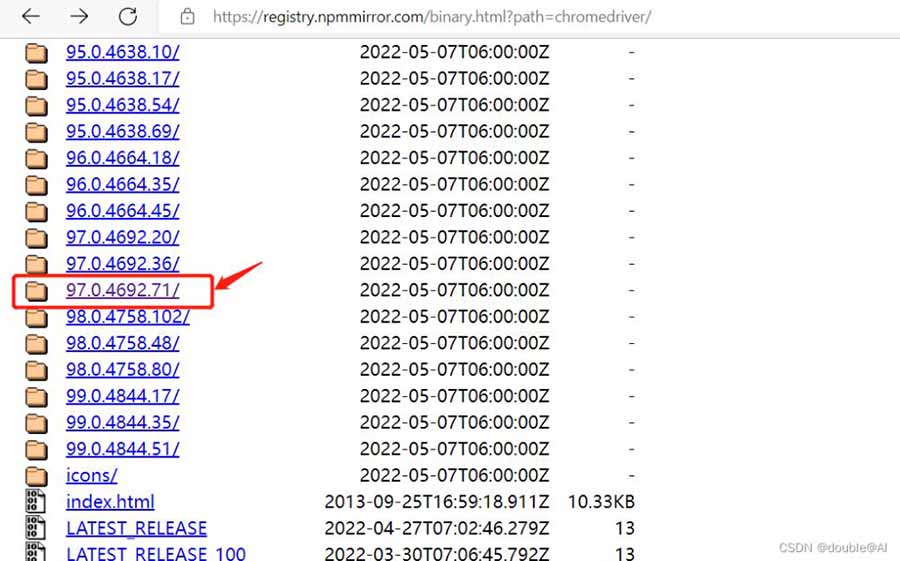 查看完版本后打开链接:CNPM Binaries Mirror下载对应系统对应版本的谷歌浏览器驱动。如图: