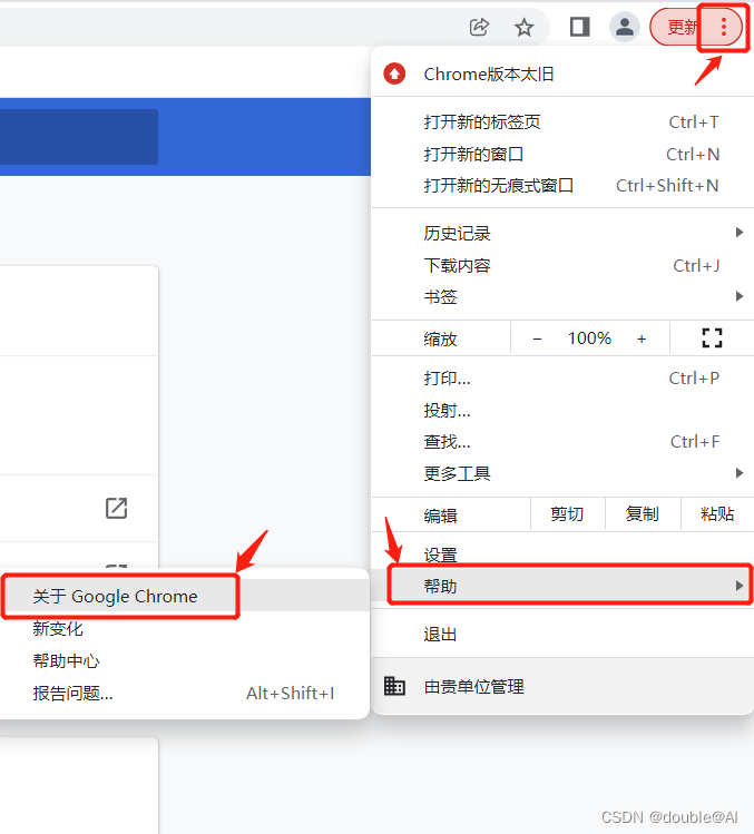 首先打开谷歌浏览器,点击“帮助”——“关于Google Chrome”,查看浏览器版本。如图: