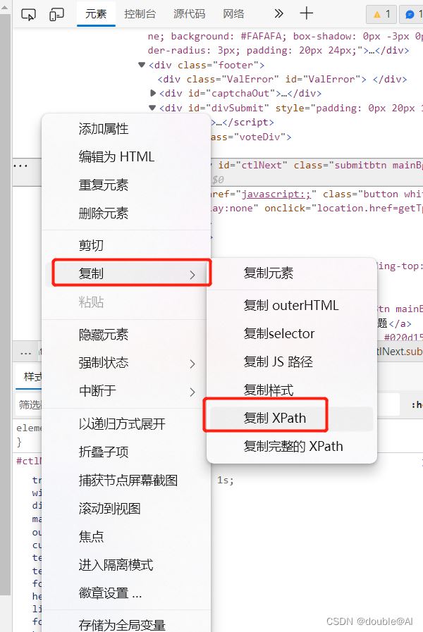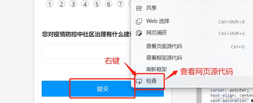 首先查看问卷源代码,并复制“提交”按钮的xpath,如图: