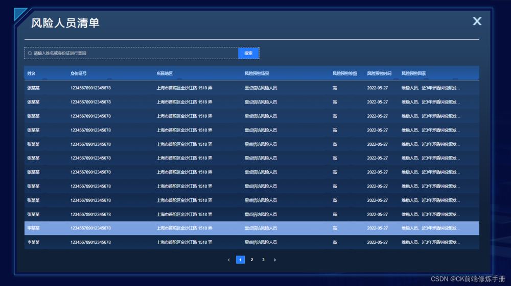 tables我们首先将searchContent的值传递给search,然后判断,当搜索栏输入为空时,返回的就是tableData的原始数据;当搜索栏不为空时,首先用filter过滤tableData内的每一个对象数组,然后在通过keys拿到每一列数据的key值,再通过some()和indexof()判断每一列数据中的每一个key值所对应的值中有没有与search相同的元素,并返回该元素所在的数据组,这样就得到所有存在该关键字的数据。