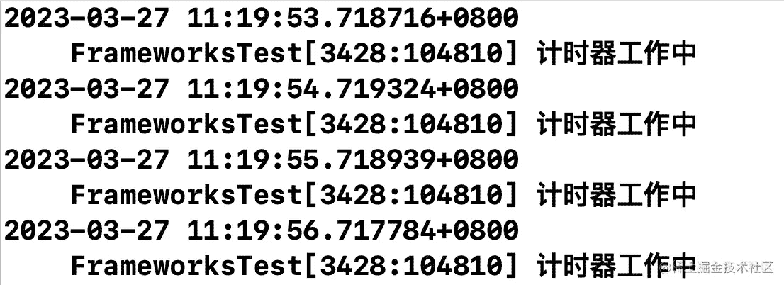 不加入运行循环,则只会打印一次,加入运行循环后,打印如下 :