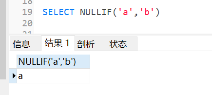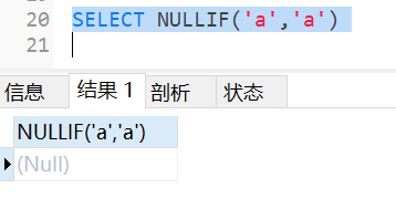 功能描述:如果两个参数相等,则返回NULL ;否则,返回第一个参数。