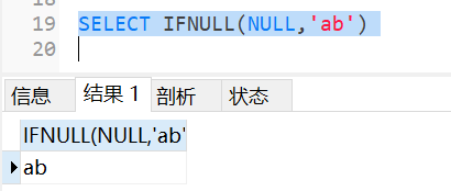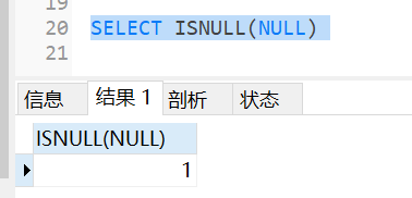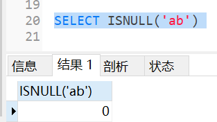 功能描述:如expr 为null,那么isnull() 的返回值为 1,否则返回值为 0。