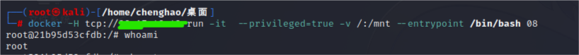 docker -H tcp://ip run -it --privileged=true -v /:/mnt --entrypoint /bin/bash image-id