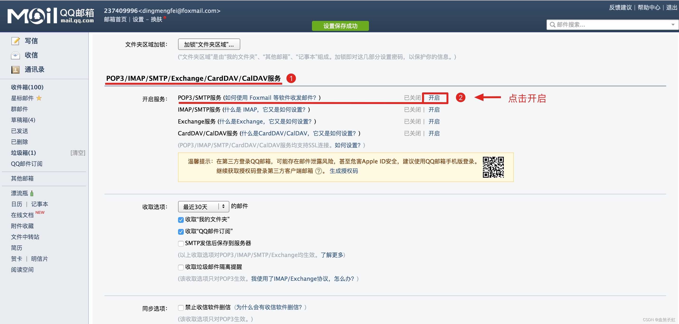 我的账号默认是开启的,如果你的没有开启,如下步骤操作