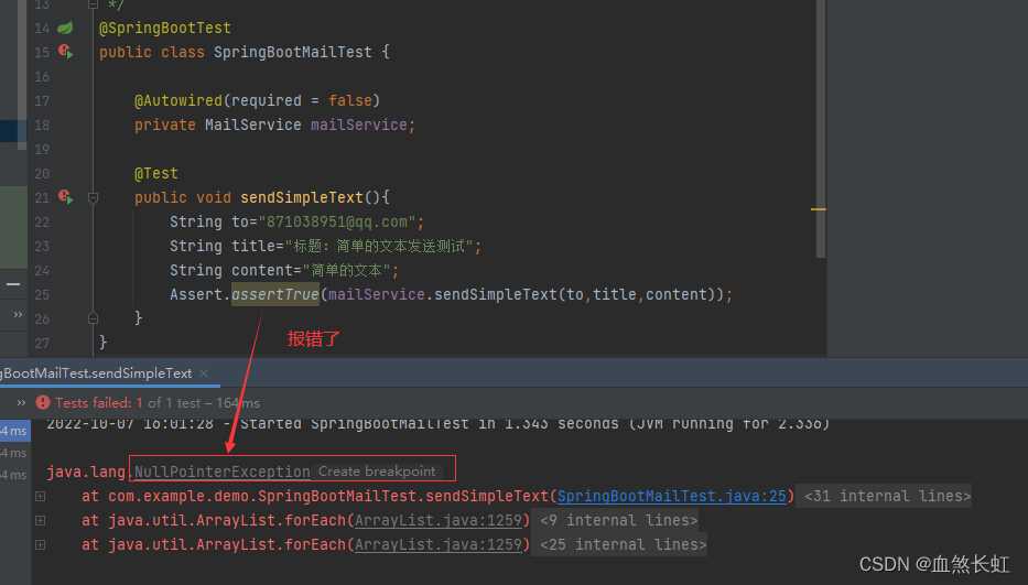 Assert.assertTrue(mailService.sendSimpleText(to,title,content));