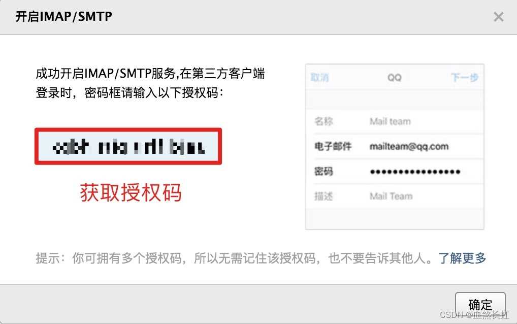 如果使用的是 163 邮箱,或者 Gmail 邮箱,直接使用密码就可以了,如果使用的是 QQ 邮箱,则需要先获取授权码。