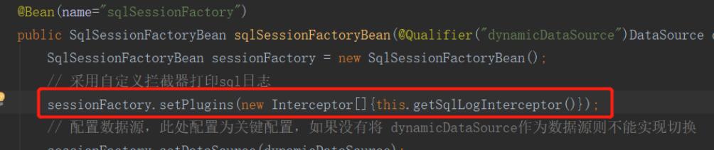 sessionFactory.setPlugins(new Interceptor[]{this.getSqlLogInterceptor()});