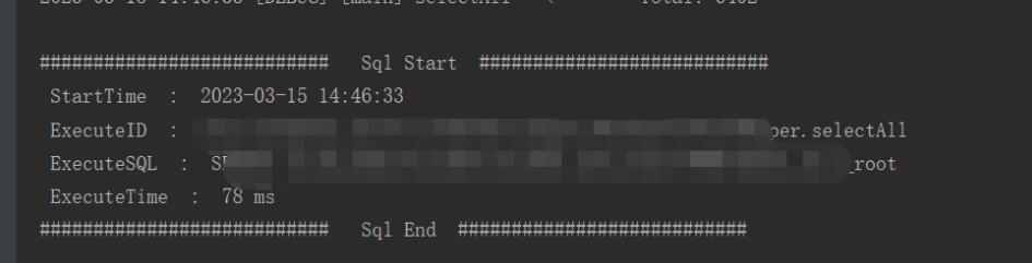 ,startTimeStr,executeID,this.buidSql(sql,args.toString().split(",")),exeTime));4.5打印效果