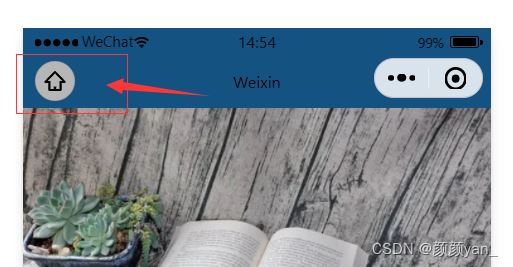 如下,当我们使用redirectTo函数会发现,页面左上角有一个“小房子”,点击返回后可以再返回到welcome页面。
