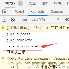 如下,我们会发现,页面输出“page id onunload”,所以,redirectTo将关闭当前页面并将页面卸载