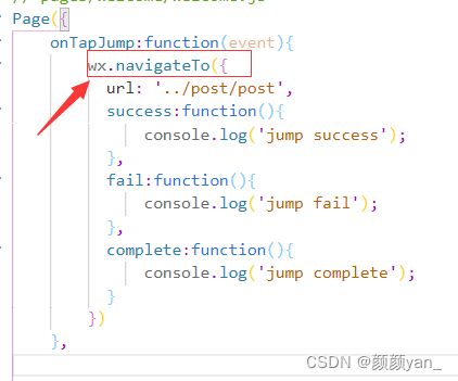 要从welcome页面跳转到post页面,需要使用事件来响应点击“开启小程序之旅”这个动作。