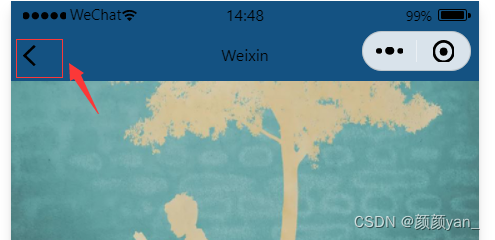 如下,当我们使用navigateTo函数会发现,页面左上角有一个返回按钮,点击返回后可以再返回到welcome页面。