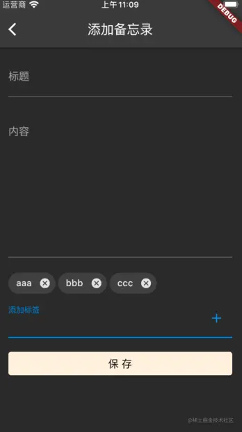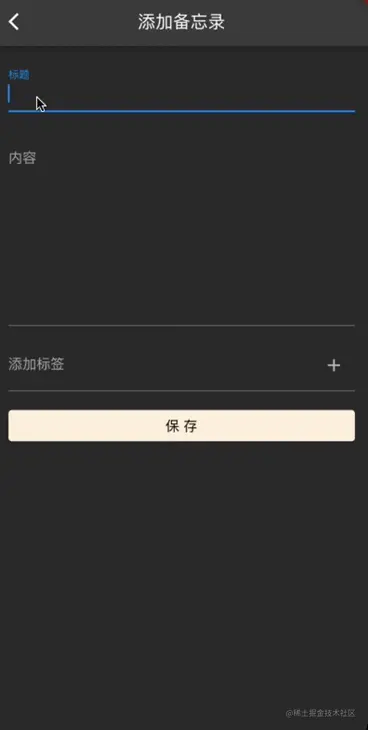 还是以我们上一篇的备忘录为例,我们假设需要给备忘录增加一个标签字段,界面如下所示。