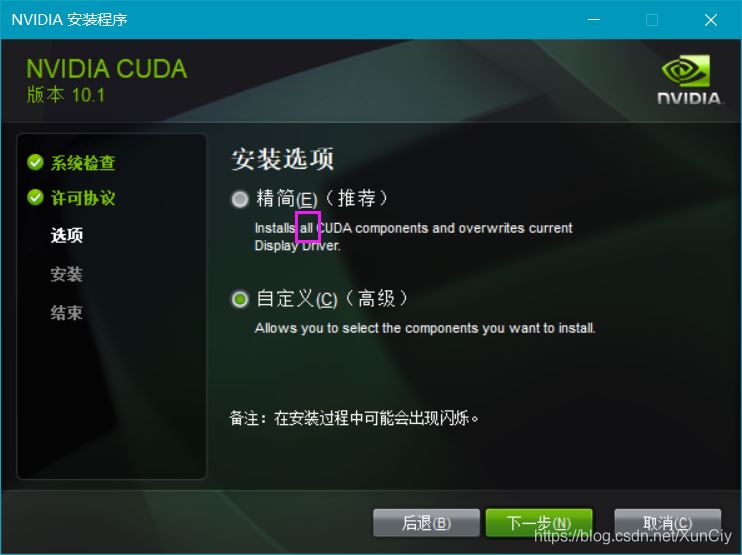 4. 敲黑板了!这里千万不要选默认的精简,这里的精简应该改成全部才对(看下面的小字说明,这就是全家桶),倒不是说安装全家桶不可以,主要是有一个东西的安装会一直导致安装失败