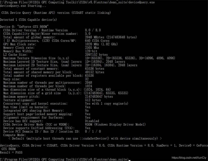 (5)运行deviceQuery.exe(需要先进入到所在目录)