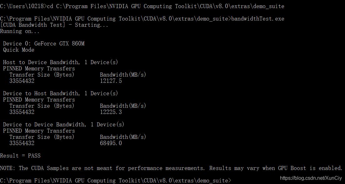 (4)运行bandwidthTest.exe(需要先进入到所在目录)