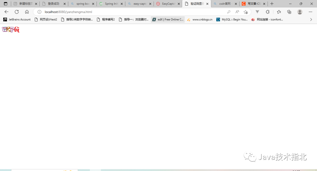 <!DOCTYPE html> <html lang="en"> <head> <meta charset="UTF-8"> <title>验证码</title> </head> <body> <img src="/kaptcha" onclick="this.src='/kaptcha?t=new Date()'"> </body> </html>