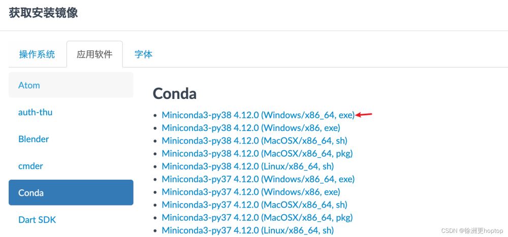 接下来,我们来安装pytorch。同样也是推荐conda的方法,我们先从清华镜像源中下载Miniconda。