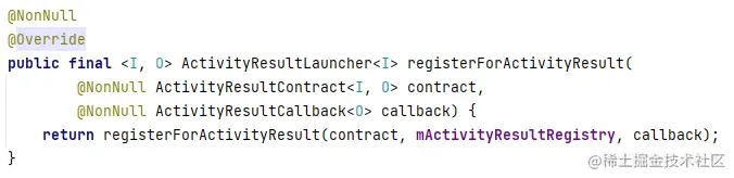 在 AppCompatActivity 或者 Fragment 中使用 registerForActivityResult() 方法来代替 startActivityForResult() (Android api29中使用startActivityForResult提示已过时,应该变成registerForActivityResult)。该方法接收两个参数并返回ActivityResultLauncher。其中两个参数一个是ActivityResultContract,一个是ActivityResultCallback。最终使用 activityResultLauncher 调用launch(...)启动目标Activity。