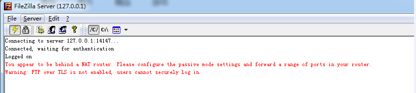 注意:如果你点击OK之后出现如下信息,是版本的问题,FileZillaServer版本在0.9.44以上的都可能出现这种情况 ,不包括0.9.44
