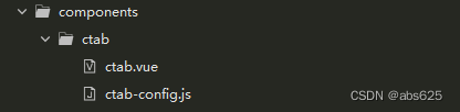 1、我们现在components(没有就新建一个components目录)目录下新建一个文件夹(我这里叫ctab),然后分别新建一个vue组件和一个js文件。组件可以让我们在其他地方引用,js文件主要是做配置。