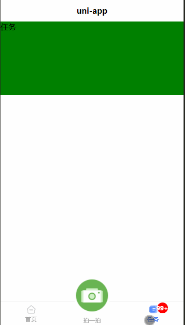 7、到这里我们的自定义tabbar就完成了,剩下的就是在tab组件中实现我们各个页面的逻辑。我们通过配置文件可以轻松的使用一个套代码实现tabbar中间按钮凸起、数字角标、动态隐藏、自定义mask覆盖tabbar(需要自己控制好层级),字体图标等功能,并且全端适用。