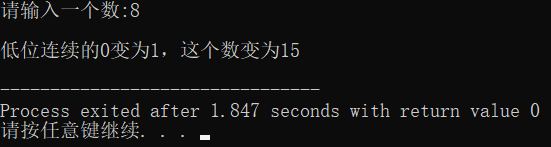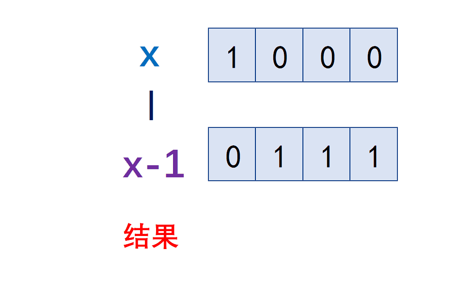 printf("\n低位连续的0变为1,这个数变为%d\n", x | (x-1) );
