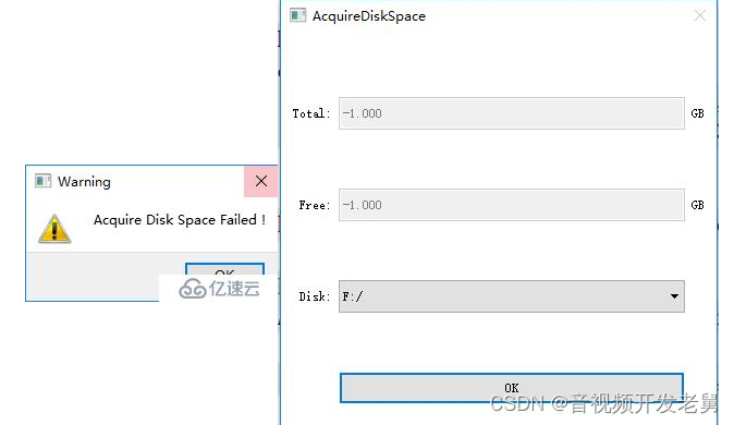QMessageBox::warning( 0, "Warning", "Acquire Disk Space Failed !" );